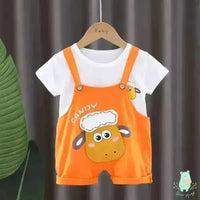 Unleash the Animated Fun with Our Short Sleeve Dungaree Set! ๐ผ๐๐๐ค