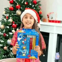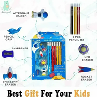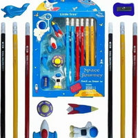 Little Tree Space Journey Pencil and Eraser Set Stationery Kit Includes 6 Pencils, 4 Eraser, 1 Sharpener, 1 Ruler Bookmar, 1 Pencil Cap Stationary Set for Kids Return Gifts for Kids