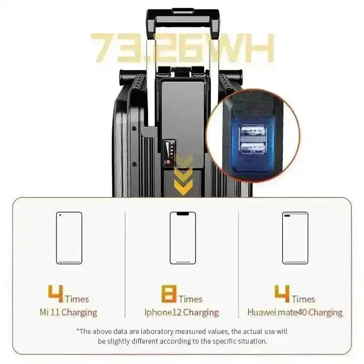 - Convertible Design: Switch between suitcase mode and motor luggage mode effortlessly with the hidden telescopic handle, providing flexibility and convenience for travelers on the move.