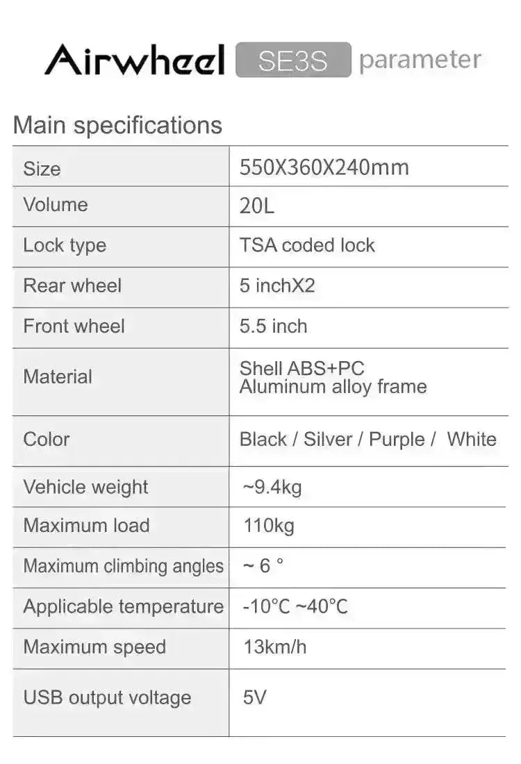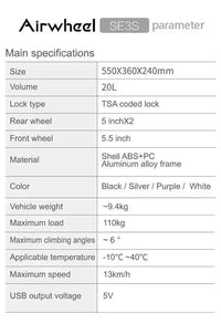 • Compact Size: This Airwheel suitcase measures 20 inches with a spacious 20-liter capacity. The SE3S meets airline size regulations, allowing you to carry it as a carry-on item and avoid the hassle of checking in luggage.