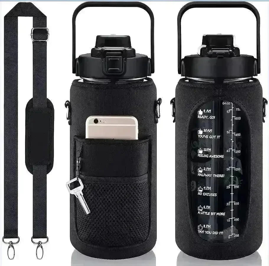 💧 Hydration & Motivation: Stay hydrated and motivated throughout your fitness journey with our inspirational water bottle. 🏋️♂️ Convenience & Functionality: Complete with accessories like a storage sleeve and cellphone holder, this bottle makes staying hydrated on-the-go a breeze. 🌟 Quality & Durability: Crafted from high-quality Tritan plastic, this bottle is built to last through countless workouts and adventures. 👍 Back-to-School Essential: Perfect for hiking and outdoor activities, this bottle is a must-have for staying hydrated and focused during back-to-school adventures.