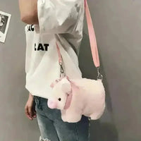 Introducing the "Piglet Posh" Cute Plush Pig Crossbody Bag, a charming and sweet addition to any accessory collection that promises to bring a smile with every wear. Designed as a pink kawaii doll, this shoulder bag blends playful whimsy with practical functionality, making it a delightful choice for anyone who adores unique, animal-themed fashion.