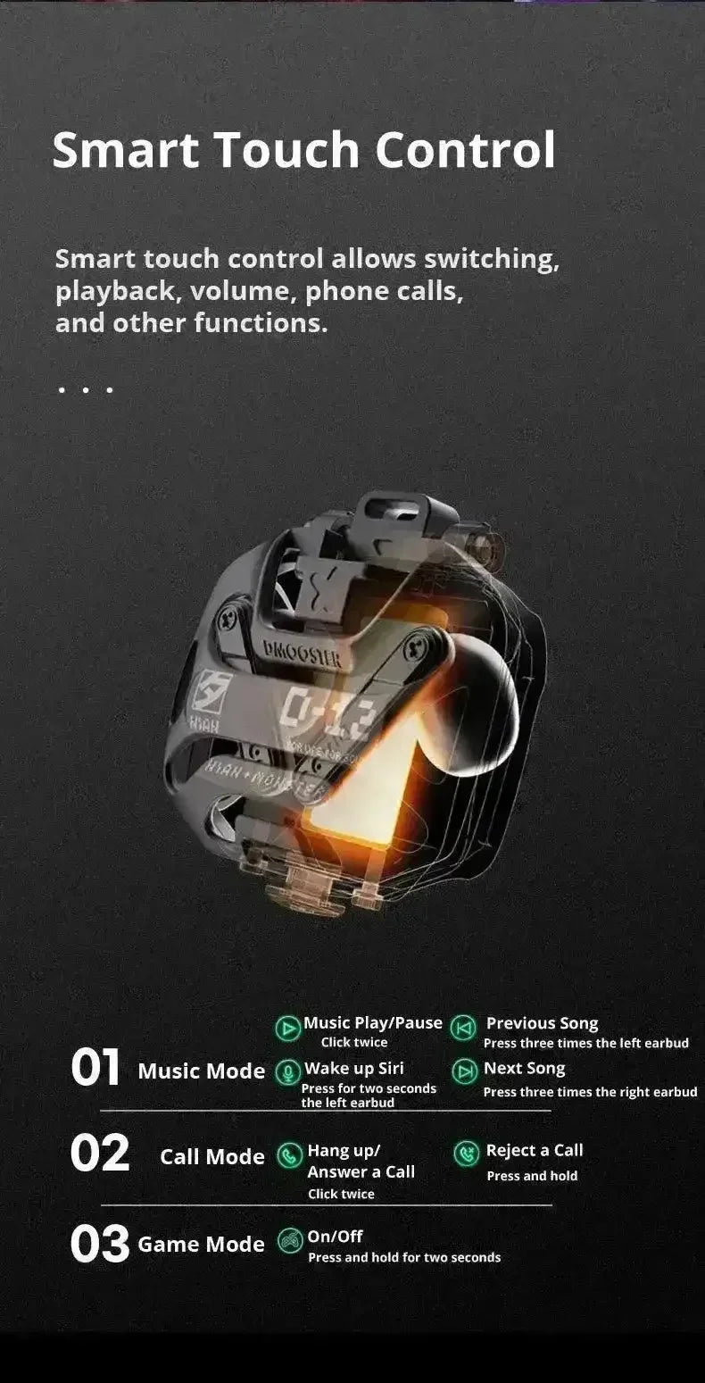 • Dual Mode Audio: Switch between Game Mode for immersive, low-latency audio, and Music Mode for a rich and detailed listening experience.