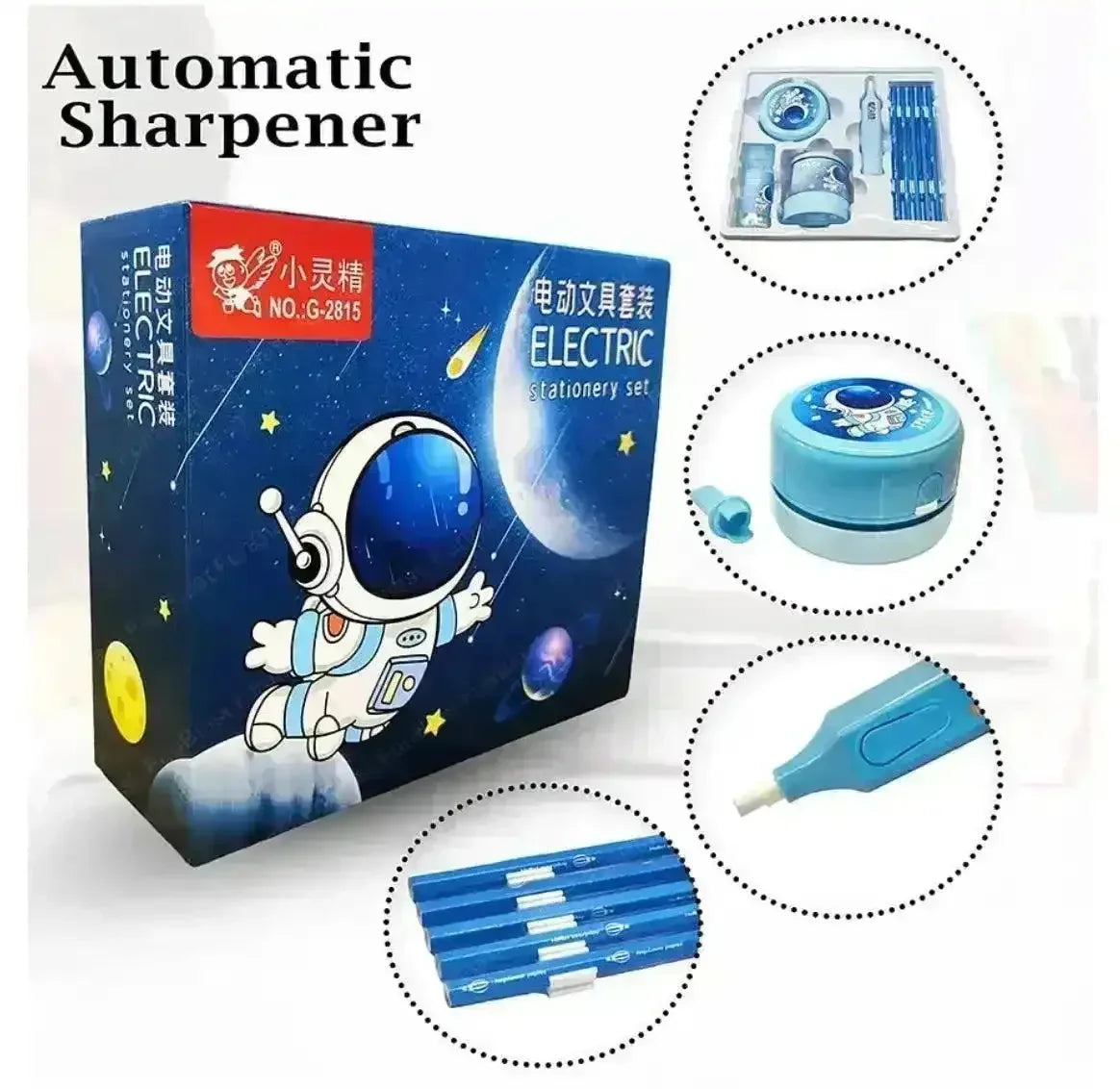 Electric Stationery Set for Kids (Space & Unicorn Theme)