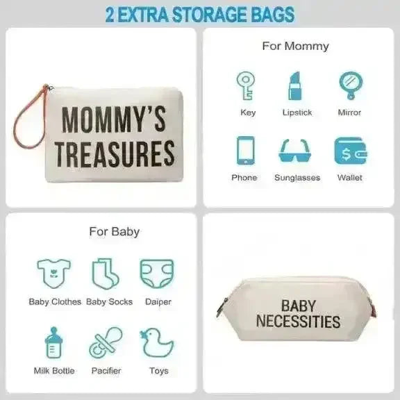 Complete Set for Ultimate Convenience: This Mommy and Baby Bag Set includes a Mommy Bag, Mommy Treasures Bag, Baby Necessities Bag, and a convenient shoulder strap. It's designed to accommodate all your essentials for labor, delivery, and beyond.