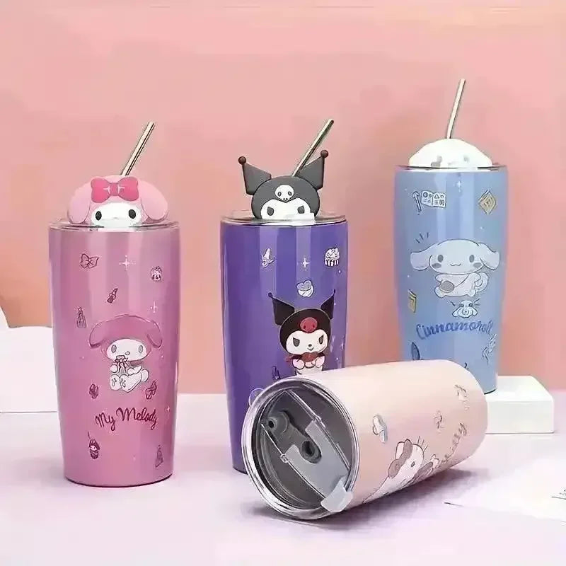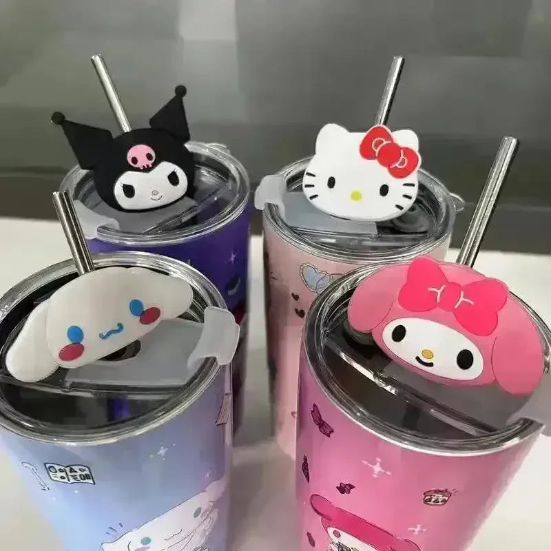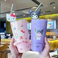 • Adorable Sanliou Characters: Available in four beloved styles - Kuromi, Cinnamoroll, Hello Kitty, and My Melody - each tumbler is adorned with vibrant and detailed artwork that captures the essence of these iconic characters.