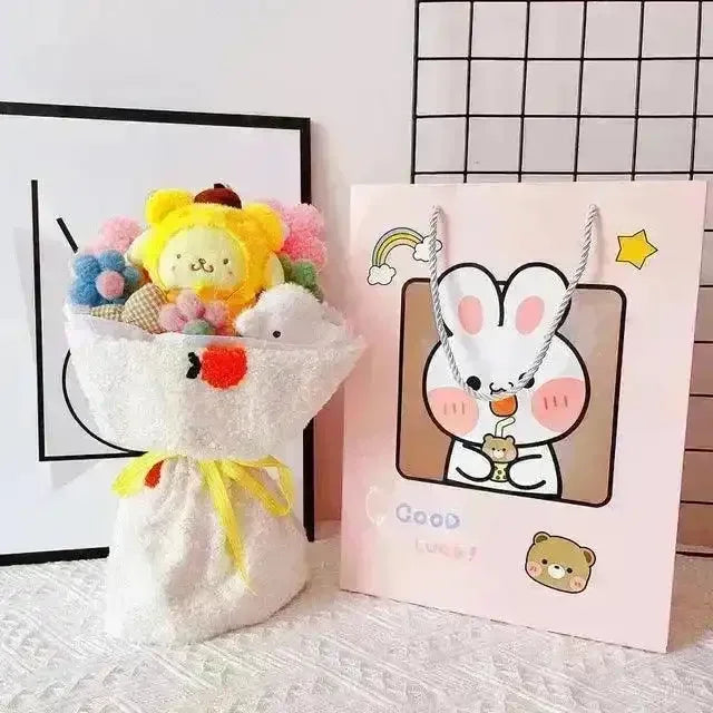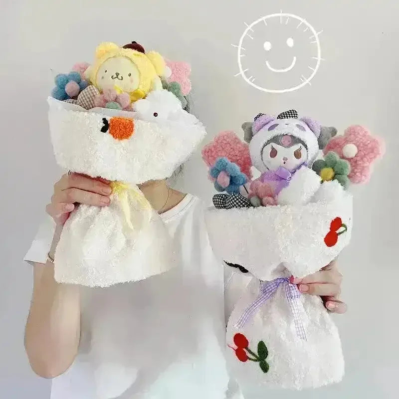 🌸 Sanliou Surprise Bouquet: My Melody, Kuromi & Cinnamoroll Plush Delight!🎁