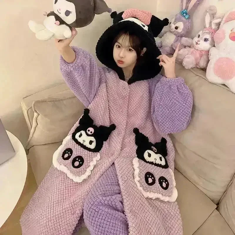 Thick Fleeced Cartoon Sanliou and DSNY Pajama Set