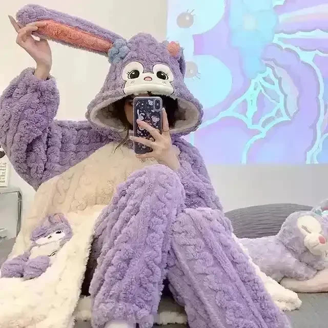 Embrace Cozy Cuteness with the Cartoon Sanliou and DSNY Women,s 2-Piece Plush Pajama Set!