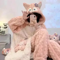 Calling all anime lovers and comfort seekers! Wrap yourself in the ultimate cozy experience with this adorable 2-piece plush pajama set. This isn,t your average sleepwear; it,s a delightful blend of kawaii charm, anime-inspired design, and ultimate warmth, perfect for snuggling up on chilly winter nights.